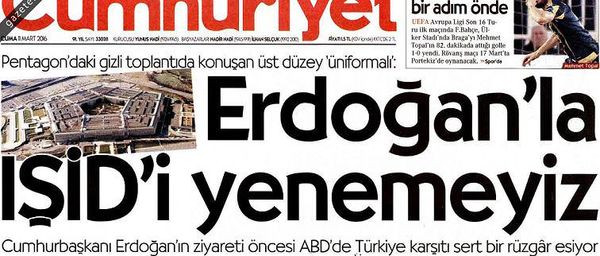 (10 Mart 2016) "Kulis" adı altında Pentagon'un Türkiye ve Cumhurbaşkanı Erdoğan'a yönelik teröre destek söylemi üzerinde durduğu öne sürüldü, ABD ağzıyla Türkiye karalandı.