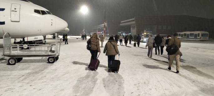 6 Mart 2026 günü saat 19.25’te Ankara’dan havalanan A Jet’e ait uçak, yoğun kar yağışı yüzünden Erzurum havalimanını ‘pas’ geçti. ‘Hasangala’ya kadar gidip dönen uçağın kadın pilotu, ikinci denemede kardan beyaz olan piste saat 20.25’te zorlu bir iniş yaptı. Tekerlerin beyaz asfalta değmesinin ardından yolcular tarafından ‘kadın pilot’, alkışlandı.