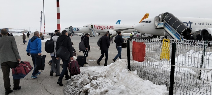Sonra terminal ile uçak arası epeyce uzak. Kışın şiddetli soğuklarda yolcular resmen ‘buz’ kesiyor. Yörede kar ve tipi varsa zaten dondunuz.