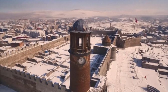 Erzurum’da etkili olan kar yağışı tarihi mekanları kar altında bıraktı ortaya eşsiz manzaralar çıktı.