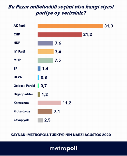 Erzurum Güncel- Erken seçim tartışmaları devam ederken MetroPOLL, 'Türkiye'nin Nabzı Eylül 2020' anketinin sonuçlarını paylaştı.