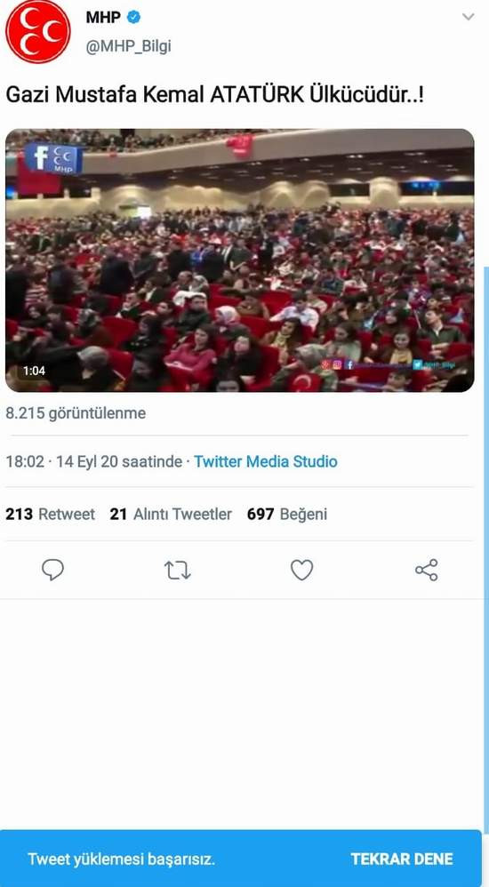 Erzurum Güncel- Milliyetçi Hareket Partisi, sosyal medya hesabından yaptığı “Gazi Mustafa Kemal Ülkücüdür” paylaşımını sildi.
