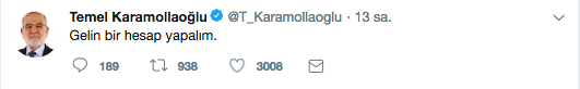 İşte Karamollaoğlu'nun kişisel Twitter hesabı üzerinden yaptığı o hesap: