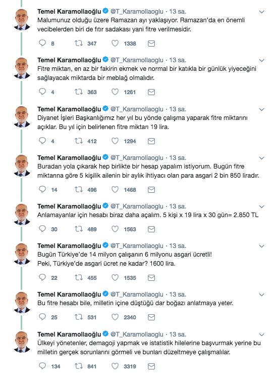 Saadet Partisi lideri Temel Karamollaoğlu, yaklaşan Ramazan ayı öncesi Diyanet İşleri Başkanlığı'nın açıkladığı 19 liralık fitre miktarı üzerinden ekonomik durum hesabı yaptı. İlginç sonuçlar çıkardı...