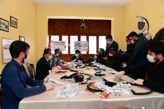 Sağlık çalışanları ve polisler için yüz maskesi ürettiler