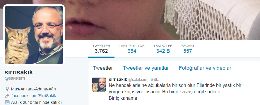 Sırrı Sakık, twitter'dan isim vermedi; ancak Cizre ve Silopi'de halkın ilçelerden kaçtığını yazdı. Vatandaşların yastık ve yorganlarla evlerinden kaçtığını yazan Sakık, olaylar için de "Bu bir iç savaş değil sadece, bir iç kanama" yorumunda bulundu.