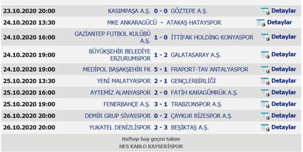 İşte Süper Lig'in 6. haftasında oynanan maçların sonuçları.