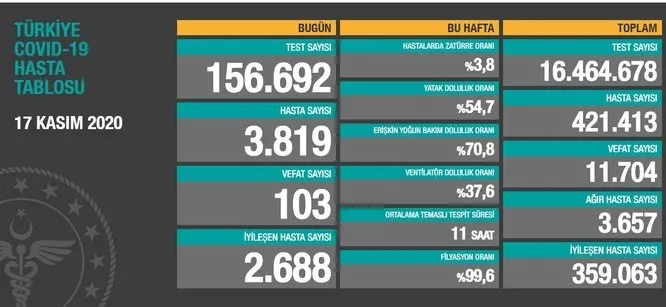 Sağlık Bakanı Fahrettin Koca 18 Kasım corona virüsü hasta ve vefat sayılarını açıkladı! Türkiye koronavirüs son durum tablosu