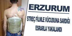 Erzurum’da polisin dikkati üzerine vücuduna streç film ile 5 kilogram 300 gram esrar maddesini saklamaya çalışan iki kişi kıskıvrak yakalandı.